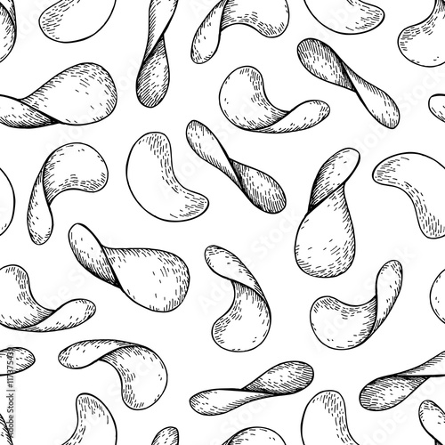 Potato Chips Vector Seamless Pattern Hand Drawn Food Background Food Background Vector