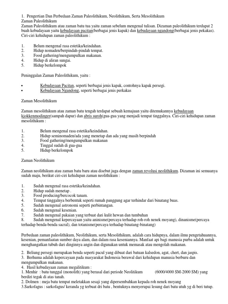 Masa Bercocok Tanam Ciri Corak Jenis Sistem Kepercayaan Food Gathering Ciri Ciri