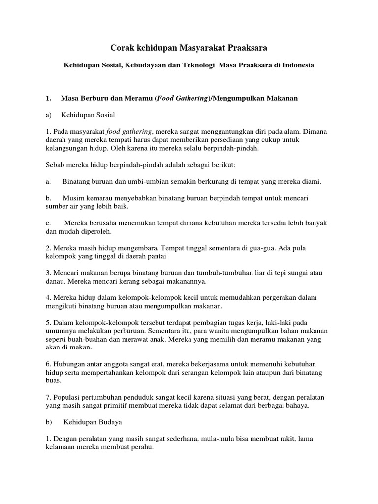 Kehidupan Sosial Kebudayaan Dan Teknoogi Masa Prasejarah Di Indonesia Food Gathering Dilakukan Pada Masa