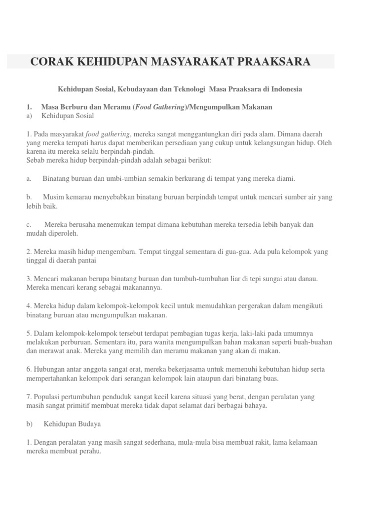 Kehidupan Sosial Kebudayaan Dan Teknoogi Masa Prasejarah Di Indonesia Food Gathering Merupakan Corak Kehidupan Manusia Praaksara Yang Artinya