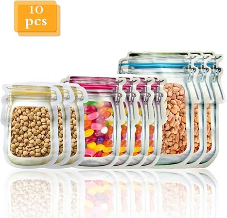 Hjhy Mason Jar Zipper Bags Food Storage Snack Sandwich Ziplock Bag Food Zipper Bag